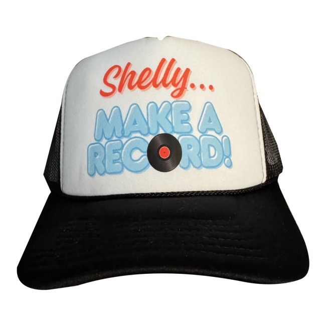 The Shelly…Make A Record! Trucker Hat from Shelly Fairchild Store is a fun, nostalgic nod to fans who have followed her musical journey and always believed in her voice. Inspired by the heartfelt call to “make a record,” this hat captures the spirit of dedication, passion, and perseverance that defines Shelly’s career.