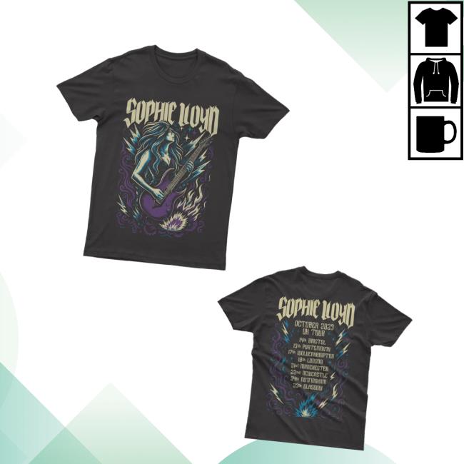 The Sophie Guitar Shop Merch Sophie Lloyd October Tour T-Shirt celebrates Sophie Lloyd’s electrifying performances and signature rock style. Made from high-quality cotton, this tee delivers a soft feel and a comfortable fit, perfect for concerts or everyday wear. Featuring exclusive artwork from the October Tour and bold tour dates on the back, it’s a must-have collectible for fans of Sophie’s powerful guitar riffs and stage presence. Stylish, durable, and full of attitude — this shirt lets you wear the spirit of rock wherever you go.