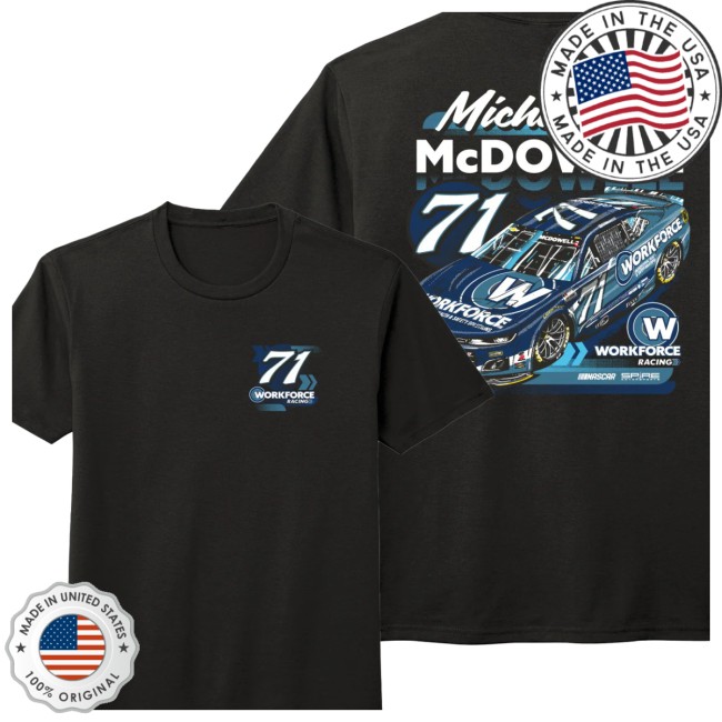 The #71 Michael McDowell Workforce T-Shirt 2026 from Spire Motorsports celebrates the driver partnership between Michael McDowell and the No. 71 Chevrolet team competing in the NASCAR Cup Series. The design highlights the Workforce-sponsored race car and the bold #71 team branding, making it a perfect piece for fans who follow McDowell’s new chapter with Spire Motorsports. McDowell joined the team beginning in the 2025 season, bringing veteran experience and race-winning pedigree to the program.