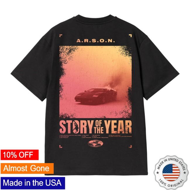 The Story Of The Year Store Merch A.R.S.O.N. Album Black Tee captures the explosive energy of the band’s latest release in a bold, modern design. Made from soft, premium black cotton, this tee features striking A.R.S.O.N. album artwork on the front, standing out with vibrant color and intensity. Its classic fit and durable print make it perfect for rocking out at shows or adding edge to your everyday look. A must-have for true fans who want to wear the power and passion of Story Of The Year’s new era.