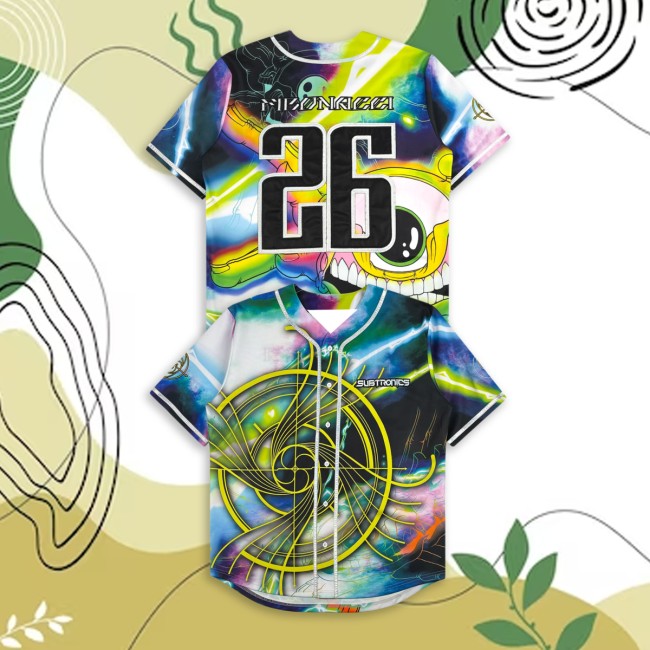 Designed with classic baseball jersey construction, the piece features custom all-over printed graphics, front and back embroidery, and a relaxed fit that makes it both comfortable and eye-catching. The collaboration with Aaron Brooks — a popular artist known for vibrant, detailed visual work — adds a unique artistic twist to this jersey, marrying music and graphic design in a way that resonates with Subtronics’ bass-heavy vibe.