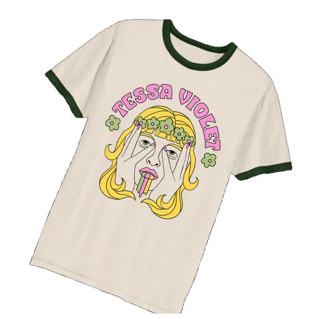 The Tessa Violet Merch Store Shop 70’s Ringer Tee is an official merch t-shirt inspired by classic 1970s style. Featuring retro ringer detailing and charming, vintage-inspired graphics, this tee reflects Tessa Violet’s playful aesthetic and creative spirit. Made from soft, high-quality fabric, it offers comfort, durability, and a relaxed fit, perfect for everyday wear or casual styling. Ideal for fans, collectors, and anyone wanting to showcase their love for Tessa Violet in a fun, nostalgic way.