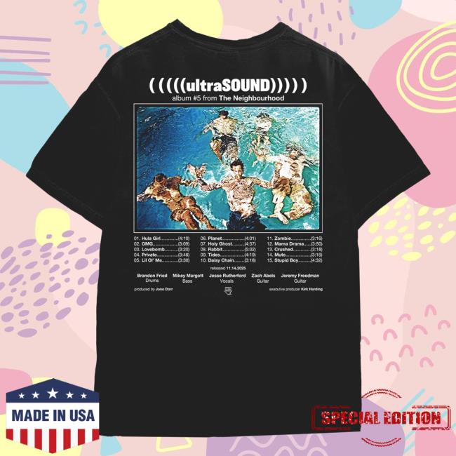 The Neighbourhood Merch Store (((((Ultrasound))))) Album Tee is a sleek and stylish T-shirt designed for fans of The Neighbourhood who want to celebrate the iconic Ultrasound album. Featuring the distinctive album graphic, this tee combines minimalist design with everyday comfort. Made from soft, breathable fabric, it offers a relaxed fit perfect for concerts, casual outings, or layering with your favorite pieces. Stylish, comfortable, and full of fan pride, this T-shirt is a must-have for any Neighbourhood supporter.