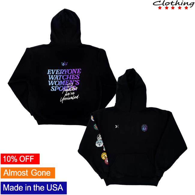 Unrivaled Merch Store Everyone Watches Women’s Sports X Unrivaled Hoodie Black is a powerful and meaningful hoodie that celebrates the impact and visibility of women’s sports. Made from soft, premium fabric, this black hoodie delivers warmth and comfort while featuring a bold statement graphic that represents pride, equality, and support. The relaxed fit makes it perfect for everyday wear, game days, or casual street styling. Confident, inspiring, and stylish, this hoodie is an essential piece for fans who stand behind women’s sports and the Unrivaled movement.