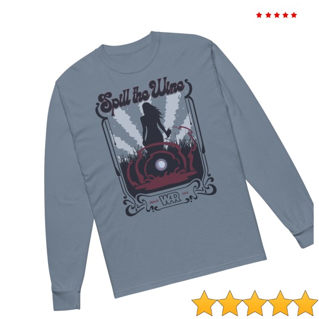 Celebrate a timeless funk classic with the Spill The Wine Long-Sleeve Shirt from the official merchandise collection of War. Inspired by the legendary hit Spill the Wine, this long-sleeve tee captures the laid-back psychedelic vibe and soulful groove that made the band a defining force in 1970s music.
