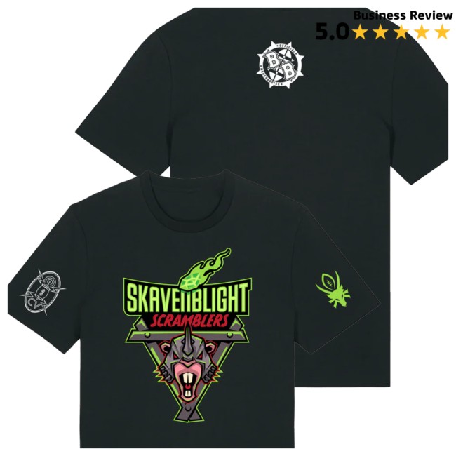 Warhammer Skavenblight Scramblers Team T-Shirt – Represent the cunning and chaotic Skaven with this Skavenblight Scramblers Team T-Shirt. Made from soft, durable cotton, this tee ensures comfort whether you’re at the gaming table, a convention, or out with friends. Featuring striking graphics of the Skavenblight Scramblers team, it’s perfect for Warhammer fans who love to show off their allegiance to the Ratmen. Available in multiple sizes, this shirt combines style, fandom, and everyday wearability.