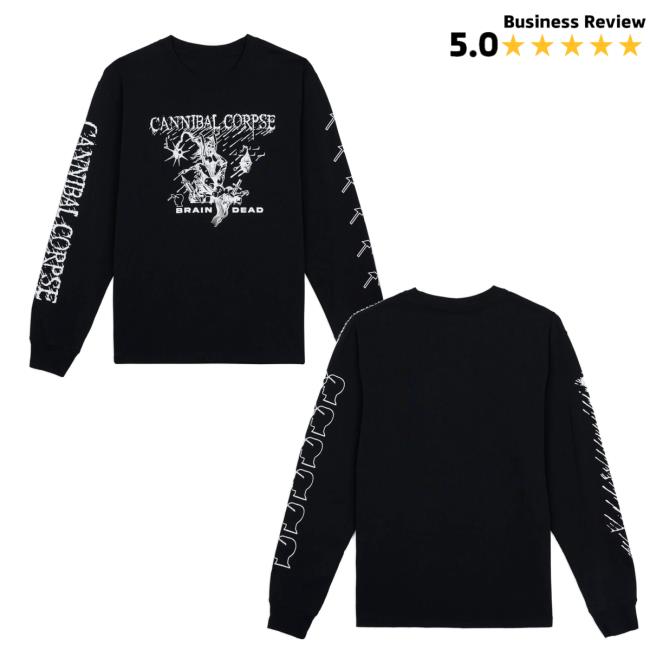 Wearebraindead Merch Store Shop Brain Dead X Cannibal Corpse Mutilation Long Sleeve is a bold collaborative piece that fuses extreme metal culture with Brain Dead’s experimental streetwear aesthetic. Featuring graphics inspired by Cannibal Corpse’s iconic Mutilation artwork, this long-sleeve shirt delivers an intense, unapologetic visual statement. Crafted from high-quality, breathable fabric, it offers durability, comfort, and a relaxed fit suitable for everyday wear or layering. Ribbed cuffs and a classic long-sleeve silhouette add structure while maintaining a raw, underground feel. Perfect for fans of Cannibal Corpse, Brain Dead, and fearless, boundary-pushing merch apparel.