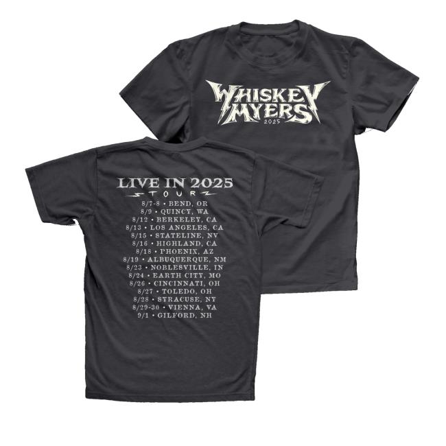 Show your support for Whiskey Myers with the official “Live In 25 Tour” T-shirt from their merch store. Made from soft, high-quality fabric, this tee features bold graphics inspired by the band’s 2025 tour. Perfect for concerts, casual wear, or adding a standout piece to your collection, it combines comfort with fan-worthy style. Officially licensed merchandise ensures authenticity and lasting quality, making it a must-have for any Whiskey Myers fan.