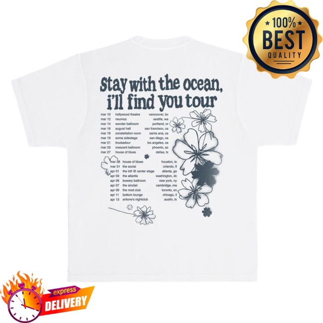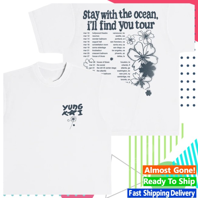 The Stay With The Ocean Tour Tee is part of a broader merch lineup that includes items such as the Sketch Ringer Tee, Stinky Tee, and Embroidered Flower Hat, all inspired by the same artistic universe around Yung Kai’s music and tour era.