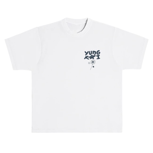 Crafted from soft, breathable cotton, the white T-shirt offers a comfortable feel that is ideal for everyday wear. The front typically features a tour-inspired graphic or logo, reflecting the dreamy ocean theme connected to Yung Kai’s debut album and tour visuals. The lightweight fabric and relaxed fit make it easy to style with jeans, shorts, or layered outfits.