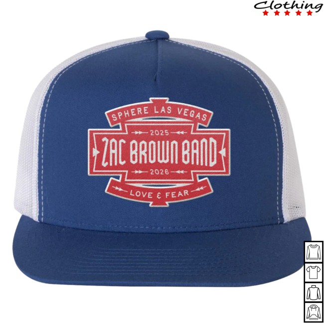 The Zac Brown Band Store Merch Blue Sphere Hat is a stylish fan accessory inspired by the band’s “Love & Fear” Sphere era, created around their groundbreaking performances at the Sphere in Las Vegas. These shows were accompanied by exclusive merchandise collections celebrating the new album and immersive concert experience.